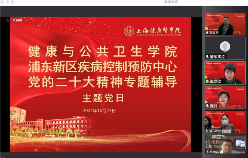 10月27日下午,新葡的京官网与上海市浦东新区疾病预防控制中心开展了以“学习党的二十大精神:全面建设社会主义现代化国家新征程的政治宣言和行动纲领”为主题的联学共建活动,新葡的京集团35222vip副校长孔宪明出席,此次活动特别邀请上海市党建研究会特邀研究员、上海市形式与政策教育研究会副会长陈荣武教授做辅导报告。我院全体教职工、学生入党积极分子和浦东疾病预防控制中心副主任肖绍坦、科信办主任周弋、科信办副主任陈涵一等代表参加此次会议。会议由学院党总支书记顾斐雯主持。