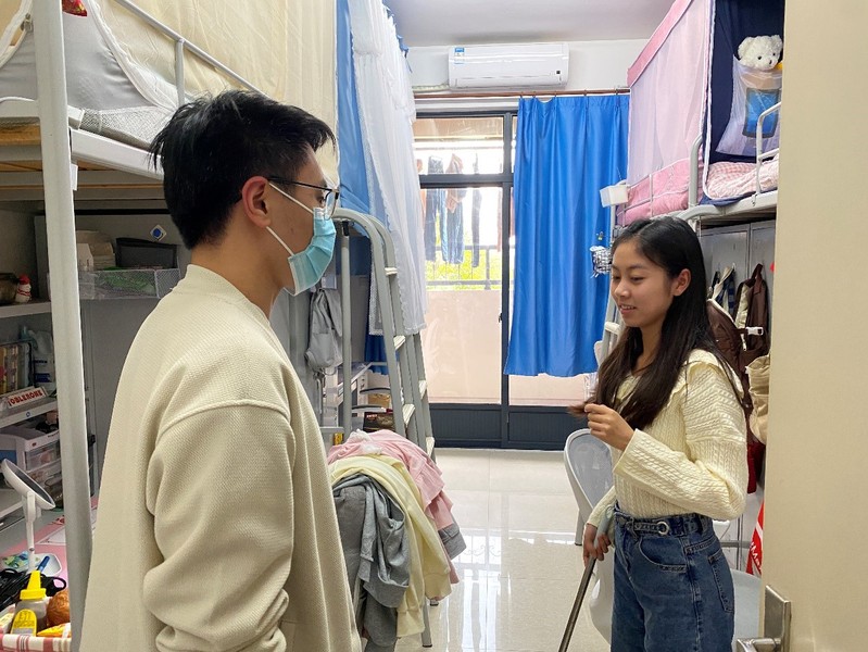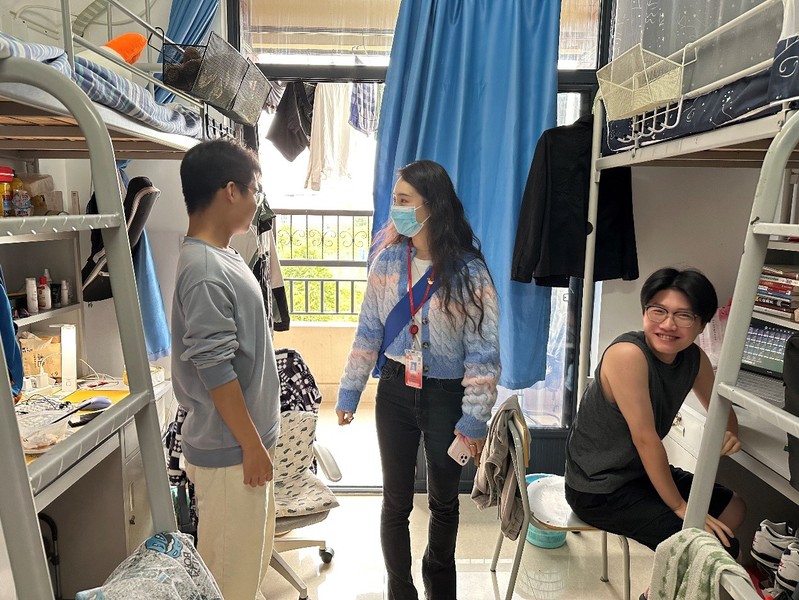 近日,针对疫情发展形势,我校实施疫情防控相应措施。为进一步做好疫情防控期间的学生管理工作,切实解决学生急难愁盼的问题,关注学生的心理健康状态,在校园封闭管理期间,新葡的京官网学生工作团队多次走进学生宿舍,党总支书记顾斐雯与辅导员姚俊阁、胡雪东、赵乐宏到寝室与学生们进行面对面交流,并通过语通话的方式,与校外学生进行沟通。封校不封爱,公卫学院学生工作团队走进学生的生活和心灵。