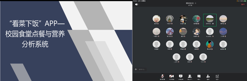 会上,曲春波老师介绍了他带领学生获得的省部级项目“看菜下饭”APP——校园食堂点餐与营养分析系统。基于提升校园食堂服务与智能营养分析、增强学校信息化管理、规范大学生健康饮食习惯、构建食堂与学生交流平台等功能的理念,提出了设计一款校园智能点餐APP。此款APP包含数据库建立、每日营养推荐、营养月报和学生-食堂交流反馈等平台。