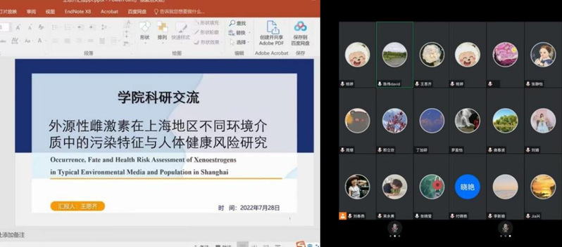 7月28日下午,学院邀请王思齐老师做了《外源性雌激素在上海地区不同环境介质中的污染特征与人体健康风险研究》的科研交流,学院全体教师参会。