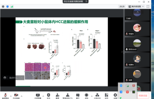 老师们就大麦苗粉单一成分的筛选、今后的应用前景等问题与李老师进行了深入讨论,希望李老师能够在肠道菌群方面做进一步的探索。