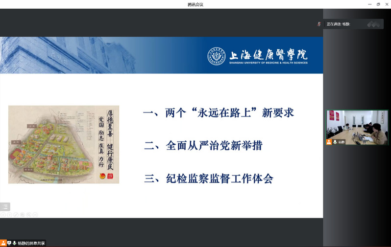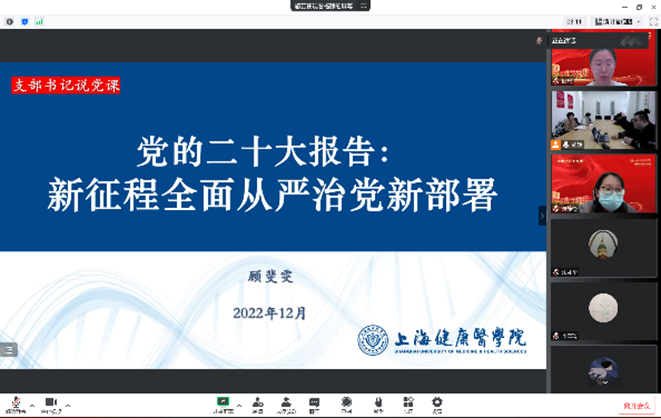 2022年12月5日,新葡的京集团35222vip党总支开展了“新征程全面从严治党新部署”党的二十大精神专题党课,由党总支书记、学生党支部书记顾斐雯主讲,本次学习采用线上线下相结合形式,同时作为学院中心组学习、政治学习,全院教职工党员、群众24人,学生预备党员6人参会。