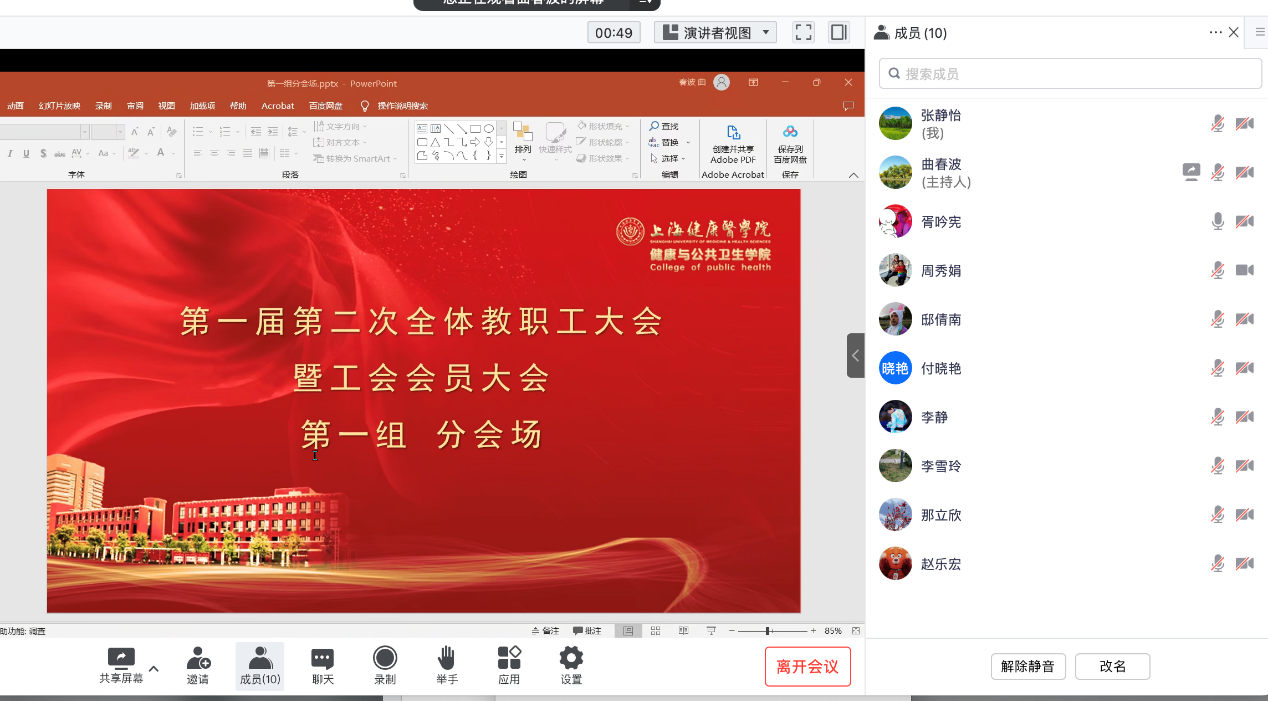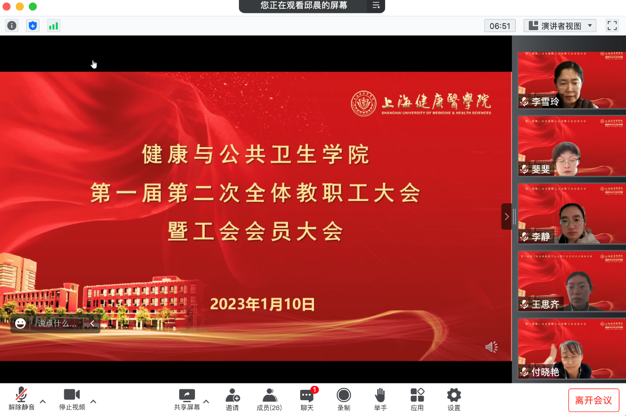 1月10日,新葡的京集团35222vip第一届第二次全体教职工大会暨工会会员大会在线上举行,新葡的京集团35222vip共计26名教职员工出席会议,会议由工会主席邱晨主持。为确保大会召开实效,1月9日中午,学院召开了预备会议,大会筹备组向集体报告了大会筹备情况,大会通过了主席团增补名单以及正式会议议程。