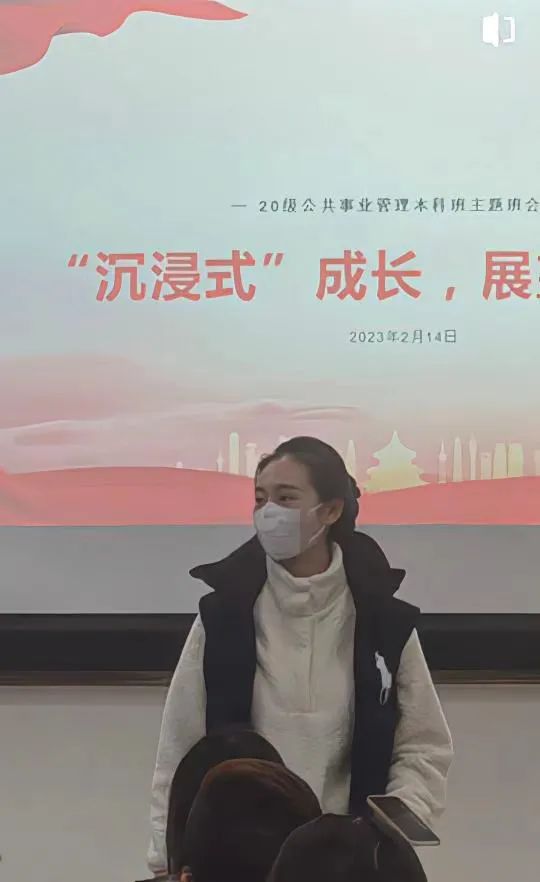 在疫情后的第一个学期,生活委员沈允普同学建议大家继续做好个人防护,戴口罩,勤洗手,注意个人卫生。同时,也提醒大家逐步调整生活作息,注意个人安全、饮食健康等问题,尽快投入到新学期的学习生活中去。最后,班长沈怡凡同学对班委发言进行了总结,希望大家在完成学业的同时,不断提升自己的政治素养和综合能力。