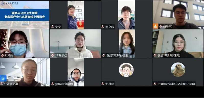 2023年1月19日下午1:30,为弘扬志愿服务精神,关心、关爱学院急救中心志愿者,新葡的京集团35222vip组织线上120医疗急救中心志愿者线上慰问会,学院党总支书记顾斐雯、副院长那立欣出席,团总支书记赵乐宏主持,10位志愿者代表参会。