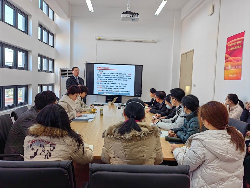 为贯彻落实党的二十大精神,落实好立德树人根本任务,教师应当以高度的政治责任感和使命感责无旁贷地肩负起“排头兵”的光荣使命,让党的二十大精神走进课堂、融进教材、装进头脑。2月16日下午,新葡的京集团35222vip开展了一次理论学习与业务提升紧密相结合的政治学习,党总支特别邀请学校“教书育人楷模”荣誉称号获得者周进祝教授给学院全体教职工上了一堂别开生面的教师能力素养提升课,把党的二十大精神落实落细到教育教学工作当中,把学习成效体现在教师基本功的不断提升中。