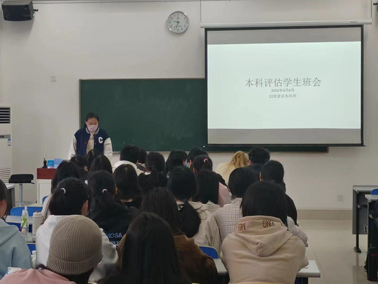 为进一步落实本科合格评估应知应会,发挥学生骨干作用,加强朋辈辅导影响力,近日22级食品卫生与营养学2班全体同学在新南苑北楼204教室开展了“本科合格评估”专题班会,让同学们更加深刻地了解本科教学评估工作。