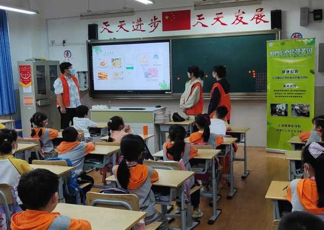 健康科普•膳食营养志愿服务队在营养周期间前往浦东康城学校,通过“聚焦食物营养与儿童生长发育”,通过人物配音形式绘声绘声地把膳食宝塔中的五大家族代表呈现出来,告诉公众提升营养健康的知识和实用技能。