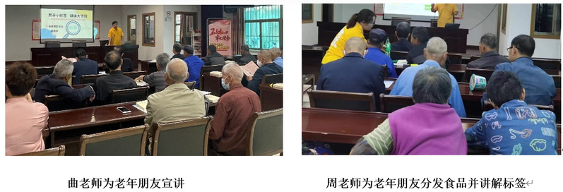 2023年5月17日星期三上午9点,新葡的京集团35222vip的师生走进上海市浦东新区旗杆村社区,为50多名老年党员朋友带去了食品营养与健康的知识。曲春波老师采用宣讲的形式为老年朋友送去了“营养小标签,健康大学问”的主题讲座,介绍了什么是配料表,为什么要看营养标签,怎样吃“零食”才是健康的。宣讲过程中,周秀娟老师为老年朋友分发了超市中常见的几种预包装食品,通过互动交流的形式,带领老年朋友认识食品标签,鉴别健康食品和垃圾食品。
