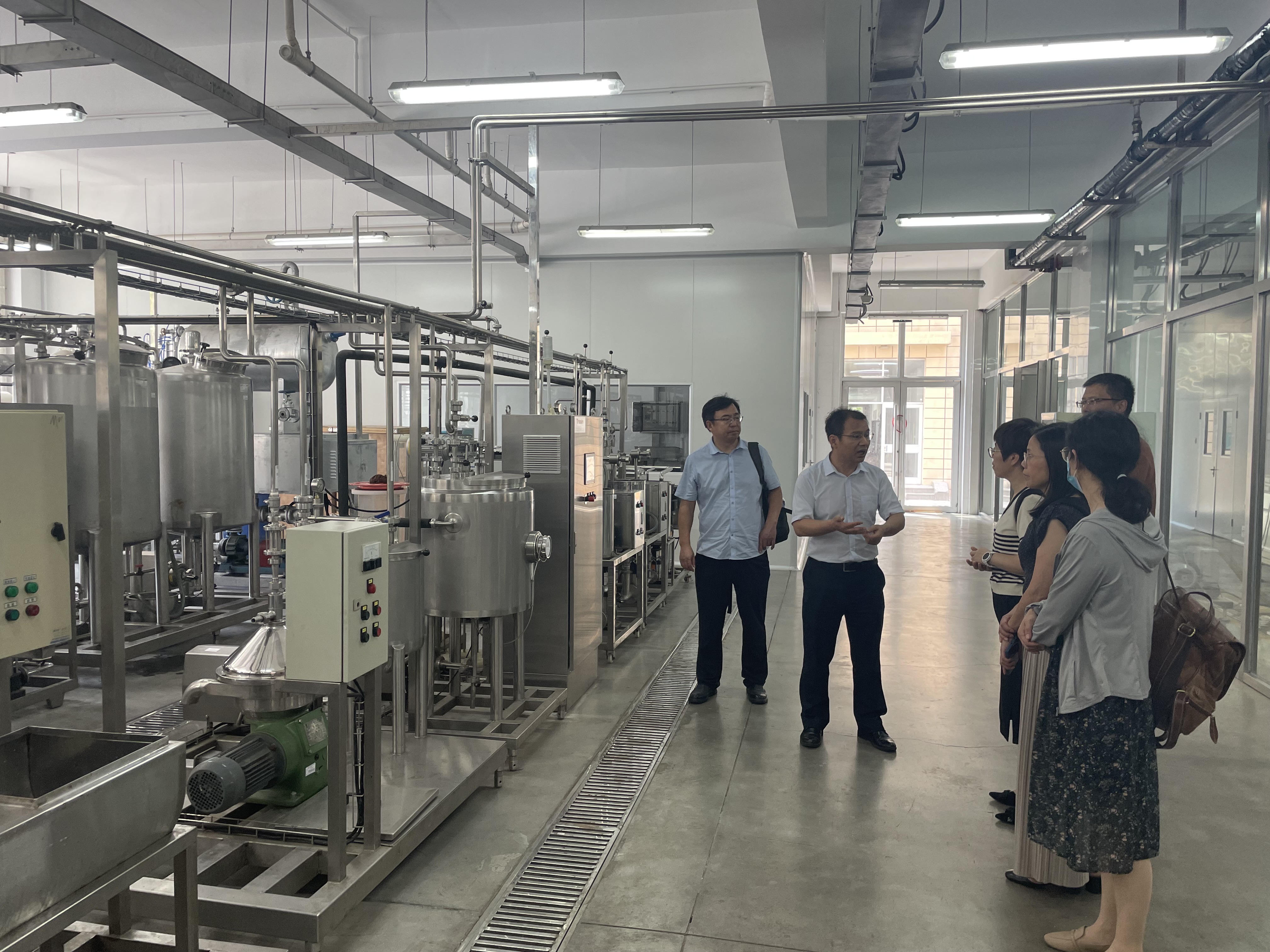 周大勇院长带领参观了国家海洋食品工程技术研究中心与海洋食品加工与安全控制全国重点实验室。他详细介绍了在朱蓓薇院士的带领下大连工业大学食品学院的发展历程以及取得的光辉成果,系统展示了承担着科研、教学、产业转化等任务的中式车间及十多个科研平台。