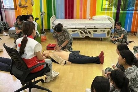 实操教学由红十字急救员们围绕快速判断、快速施救等方面,利用模拟人进行现场演示心肺复苏(CPR)的基本原则、注意事项、操作步骤和自动体外除颤仪(AED)的使用流程。