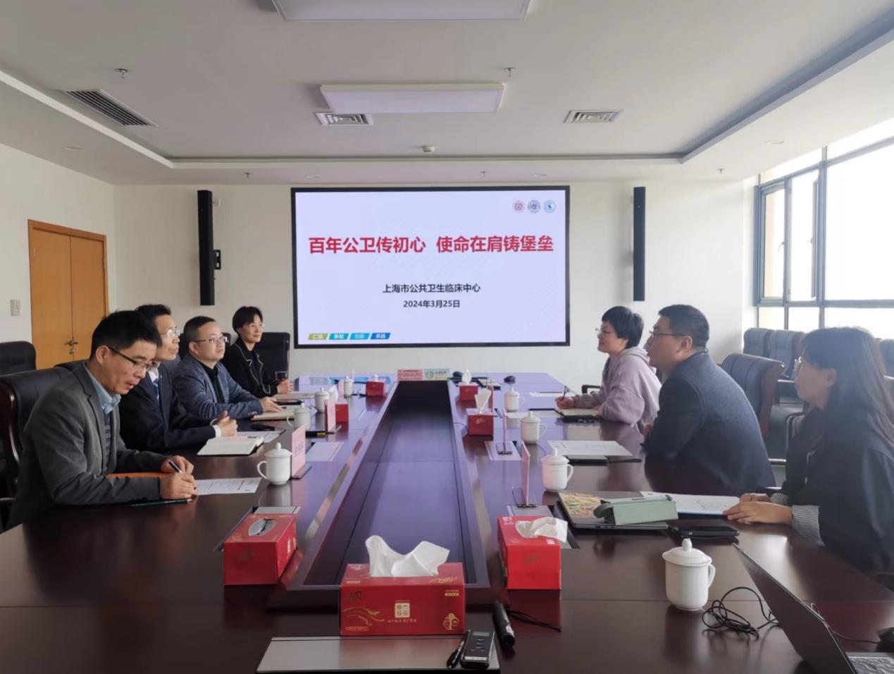 为推进本科生教学与实习实践工作,加强学校与行业之间的合作与交流, 3月25日下午,新葡的京官网党总支书记顾斐雯,副院长张浩等一行4人赴上海市公共卫生临床中心进行走访调研。上海市公共卫生临床中心党委副书记、中心主任沈银忠,公卫中心副主任凌云,公卫中心科研部副主任彭建涛,公卫中心科研部副主任张晓玲参加此次交流活动。