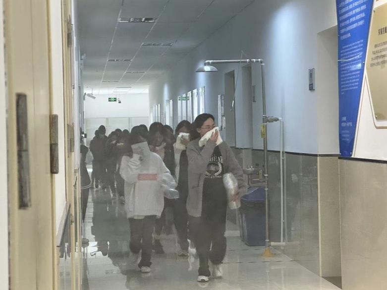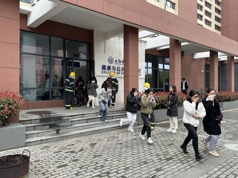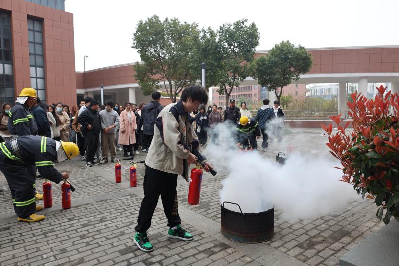 火情之下,保证生命安全是第一要义。师生演练模拟实验室、教室区域突发火情,随着烟幕弹释放、消防警报响起,所有师生按照学院消防应急疏散路线,迅速而有序地从4号楼撤离到“安全地带”。撤离过程中,师生用湿毛巾捂住口鼻,听从现场指挥,在楼梯口不互相推、拉,不争先恐后,始终把确保生命安全放在首位。