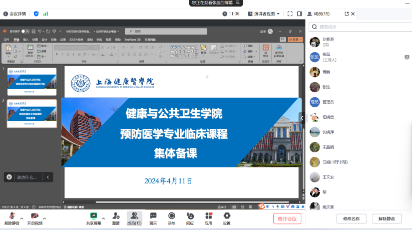 为了增强附属医院教师的教学能力和教学水平,提高预防医学专业教学质量, 2024年4月11日下午,附属崇明医院开展了预防医学专业临床课程集体备课活动。上海交通大学医学院教务处处长钮晓音、上海市同仁医院肾内科副主任朱鼎玉、新葡的京集团35222vip临床医学院专业主任李晨蕾作为专家出席了本次活动。崇明医院相关领导和教师团队、新葡的京集团35222vip预防医学专业相关教师等参加了此次活动。