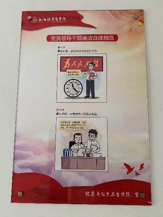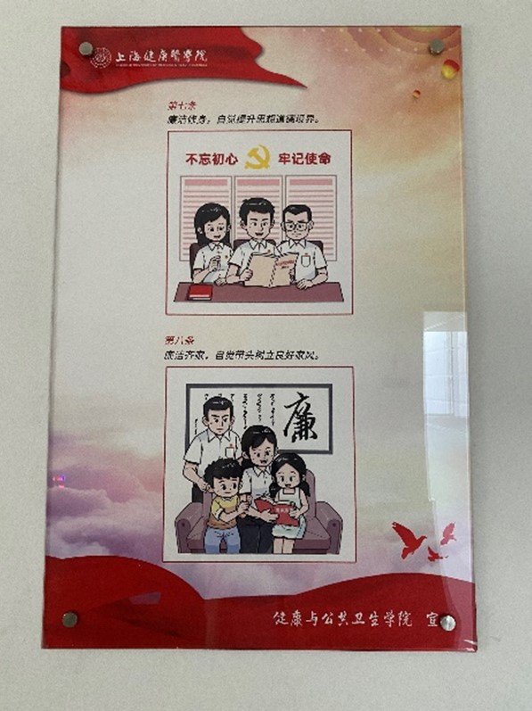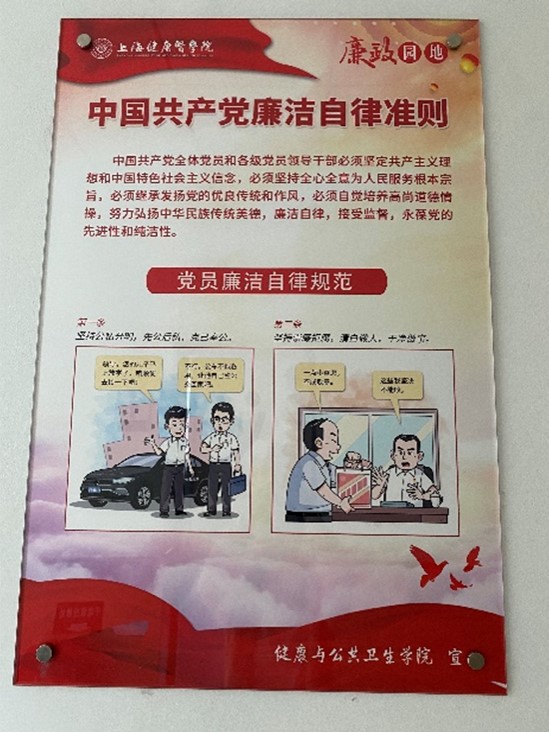 党纪学习教育开展以来,新葡的京集团35222vip党总支指导各党支部把《中国共产党章程》作为必修课,学习好贯彻好《中国共产党纪律处分条例》,原原本本学,逐章逐条学,联系实际学。将纪律建设全面贯穿于党的治理全过程,并将廉洁文化建设融入到全面从严治党的日常工作中。以学习贯彻习近平新时代中国特色社会主义思想为引领,通过深挖廉洁文化,结合学院实际,建设廉洁文化墙,打造具有鲜明特色、融入日常、浸润人心的廉洁文化宣传教育新阵地,着力提升全体党员尤其是党员干部的纪律意识和规矩意识。