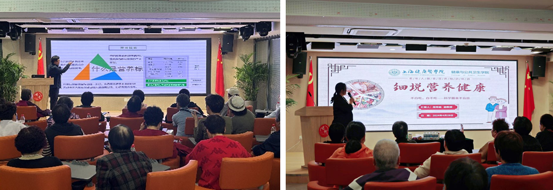 在营养周“食话食说”专家讲座活动中,复旦大学公共卫生学院的高翔教授为新葡的京集团35222vip的师生们带来了精彩的营养学基础研究讲座。在营养周进社区活动中,新葡的京集团35222vip的曲春波、周秀娟副教授带领20级食品营养学的本科生走进上海市徐汇长桥社区,为近百名老年居民朋友带去了食品营养与健康的知识。特别是围绕“奶豆添营养”、“少油更健康”,开展主题讲座,帮助老年朋友认识奶豆的营养价值和食用方法,以及减油的小妙招。