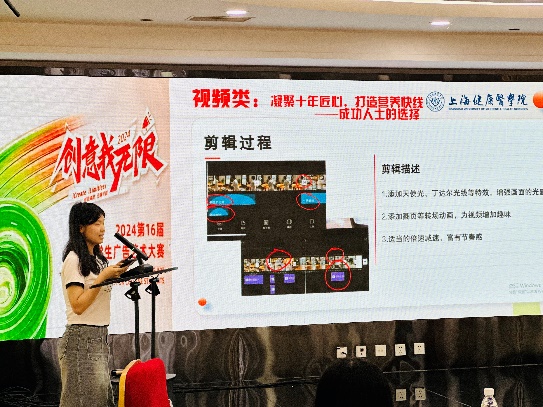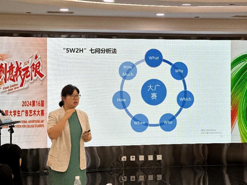所有作品展示完毕后,吴冰冰教授为参赛选手做大广赛的赛前冲刺指导。吴冰冰教授用“5W2H七问分析法”教导参赛选手们如何选择命题、类别以及把握关键词,又以策划类为例,要求同学们举一反三,强调一份好的作品需要注重前期筹划准备工作、不拘泥于形式,既要保留原创性又要紧扣主题,既要突出重点又要构思精深;结合我校的专业特点,利用专业优势,客观精准地评价医药类产品的功能,将产品能够满足消费者的痛点需求更好地呈现出来,为作品加分。吴教授一席话令在场的同学们受益匪浅。