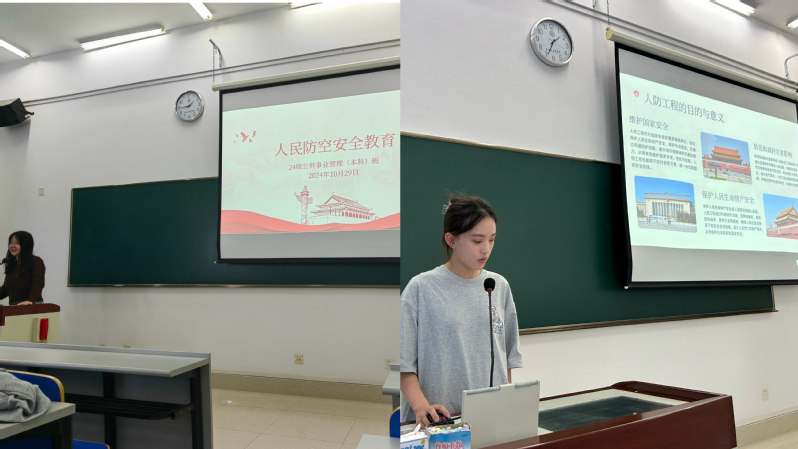 10月29日,2024级公共事业管理(本科)班全体同学于东苑北楼201教室开展了人民防空安全教育主题班会。班会围绕人防工程的目的、人民防空相关法律法规、防空工程设施及应急处置展开,增强了学生爱国意识和民族自豪感,帮助学生牢固树立“强我国防,人人有责”的观念。