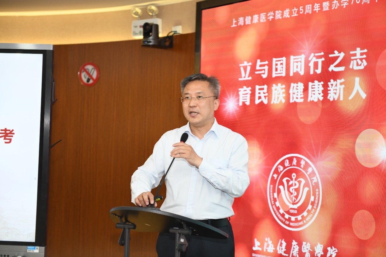 郑沈芳书记在致辞中说,历史在这一时刻给予了我们巨大的挑战,也给予了学校难得的发展机遇,我们将抓住机遇,敢于面对挑战,进一步发挥应用型医学本科院校的作用与功能,并将其转化为推动学校发展的强大动力,秉持培育健康守门人的育人理念,遵循公共卫生人才发展规律,培养医防融合的复合型人才,提升城市公共卫生安全保障能力,为社会主义现代化国际大都市建设做出学校应有的贡献。