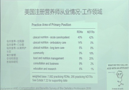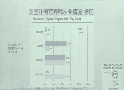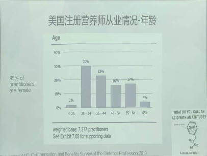 年纪轻轻却履历漂亮的张亚捷学姐以日本和美国为例向同学们介绍了营养师的从业情况。如以美国为例,注册营养师是一个工作领域相对比较多元化、对学历有较高的要求,且随着工作经验的积累而薪资也相应提高的职业。