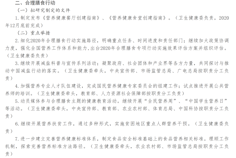 2020年9月1日,健康中国行动推进委员会办公室发布的关于印发推进实施健康中国行动2020年工作计划的通知(国健推委办发〔2020〕1号)文中提到加强营业专业人才队伍建设,试点推进开展公共营养师的培训。