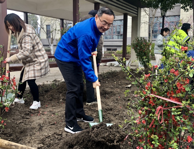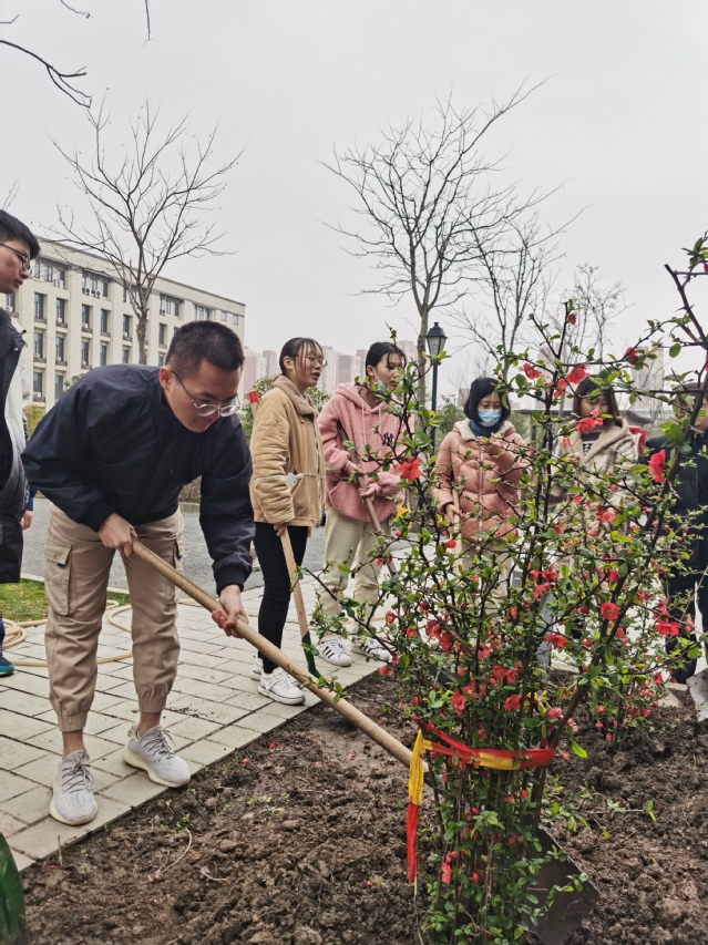 此次植树活动也是学校后勤服务中心与公卫学院共建的健康劳育文化品牌的实践活动之一,通过劳动实践,让学生们在植树活动中体会到劳动的不易,锻炼学生的劳动能力与团队协作能力,形成积极的劳动品质。后勤服务中心将继续践行高校“三全育人”、“立德树人”的工作理念,努力深化育人功能,积极探索新时代劳动教育系统的构建,打造健康特色劳育文化品牌。迎着春风,师生党员携手共栽海棠美景,以劳动实践迎接建党百年,展现新时代健康人新风采!(后勤服务中心)