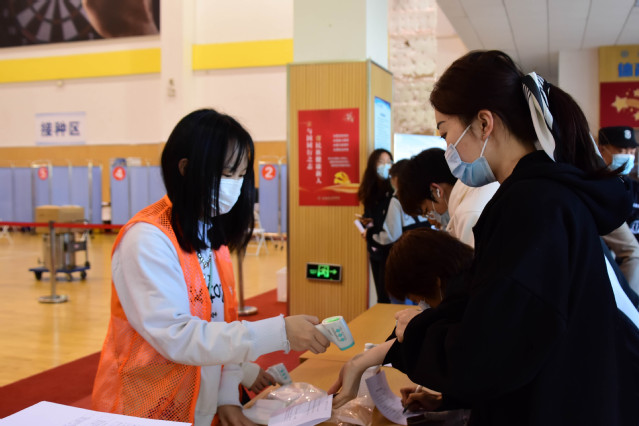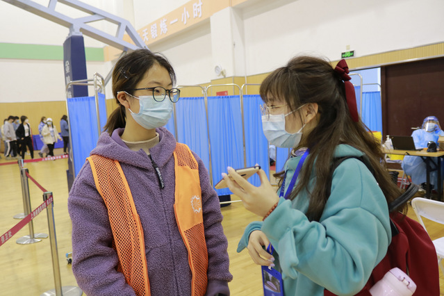 在门口测温的志愿者,为所有进入接种点的师生测温。在体温正常的情况下,请同学们整齐列队,依次进入。预检区的志愿者协助医务室医生再次检查材料;等候区的志愿者引导同学们耐心等候,并引导至接种区;接种区志愿者做好接种同学的引导与服务;留观区的志愿者保证同学们留观三十分钟后离场;医务服务区的志愿者随时服务医护人员。在整个志愿服务过程中,志愿者们密切与医院、后勤、保卫等部门沟通,密切配合,无缝对接,设立轮班制度,动态调整各岗位人数。从早上八点一直持续到下午四点半,通过自己的辛勤工作,以饱满的热情和周到的服务,充分保障了疫苗接种的有序进行,同时树立了新葡的京集团35222vip的良好形象。