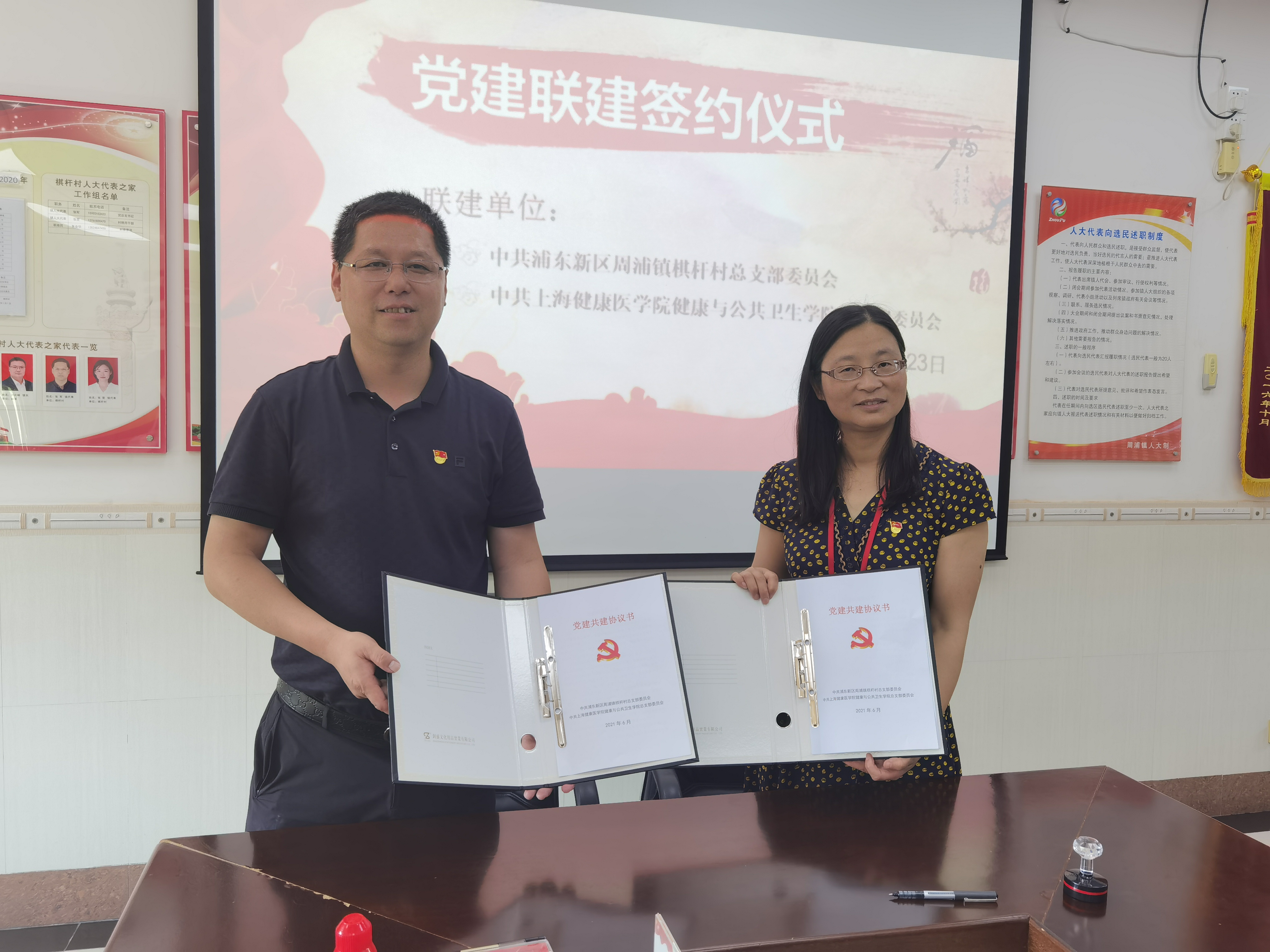 随后,两位书记分别代表中共新葡的京集团35222vip新葡的京集团35222vip总支部委员会与中共浦东新区周浦镇棋杆村总支部委员会签署党建联建协议。双方将互鉴基层组织建设经验,以为民服务为宗旨,以卫生健康为特色,将党建工作推向新的一页。
