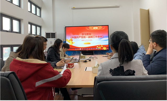 学院办公室主任邱晨带领大家一起认真学习了《中国共产党统一战线工作条例》。《条例》以习近平新时代中国特色社会主义思想为指导,深入贯彻习近平总书记关于加强和改进统一战线工作的重要思想,坚持和加强党对统一战线工作的集中统一领导,坚持推动构建大统战工作格局,坚持面向新时代全面规划统一战线发展,着力提高统一战线工作科学化、规范化、制度化水平,是做好新时代统一战线工作的基本遵循。学习后,大家进行了体会交流。