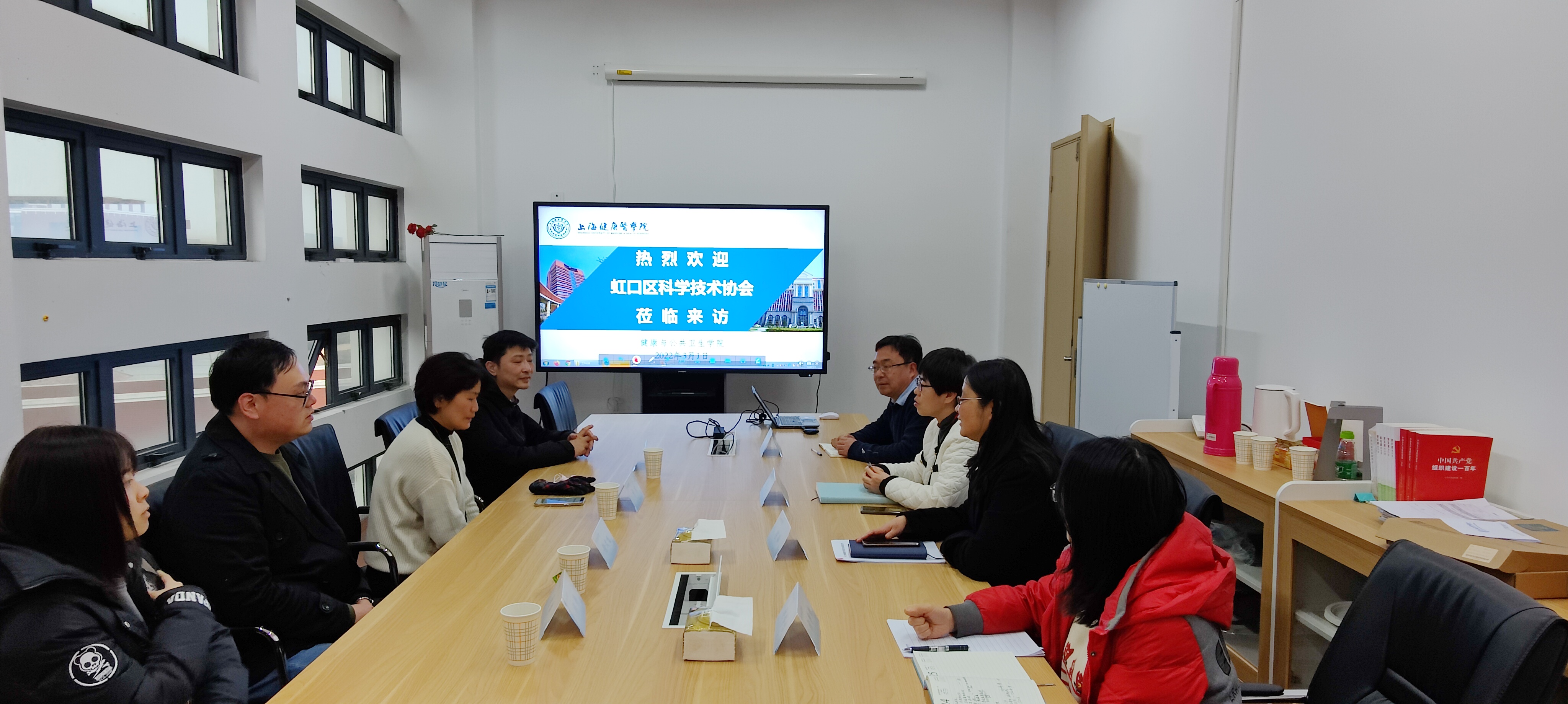 2022年3月1日下午,上海市虹口区科学技术协会贾萍主任等一行来访新葡的京官网洽谈,会议在新南苑会议室召开,会议由新葡的京集团35222vip党总支书记陈泓主持,那立欣副院长、外语教学部阮俊斌老师以及学院部分专业教师参加。
