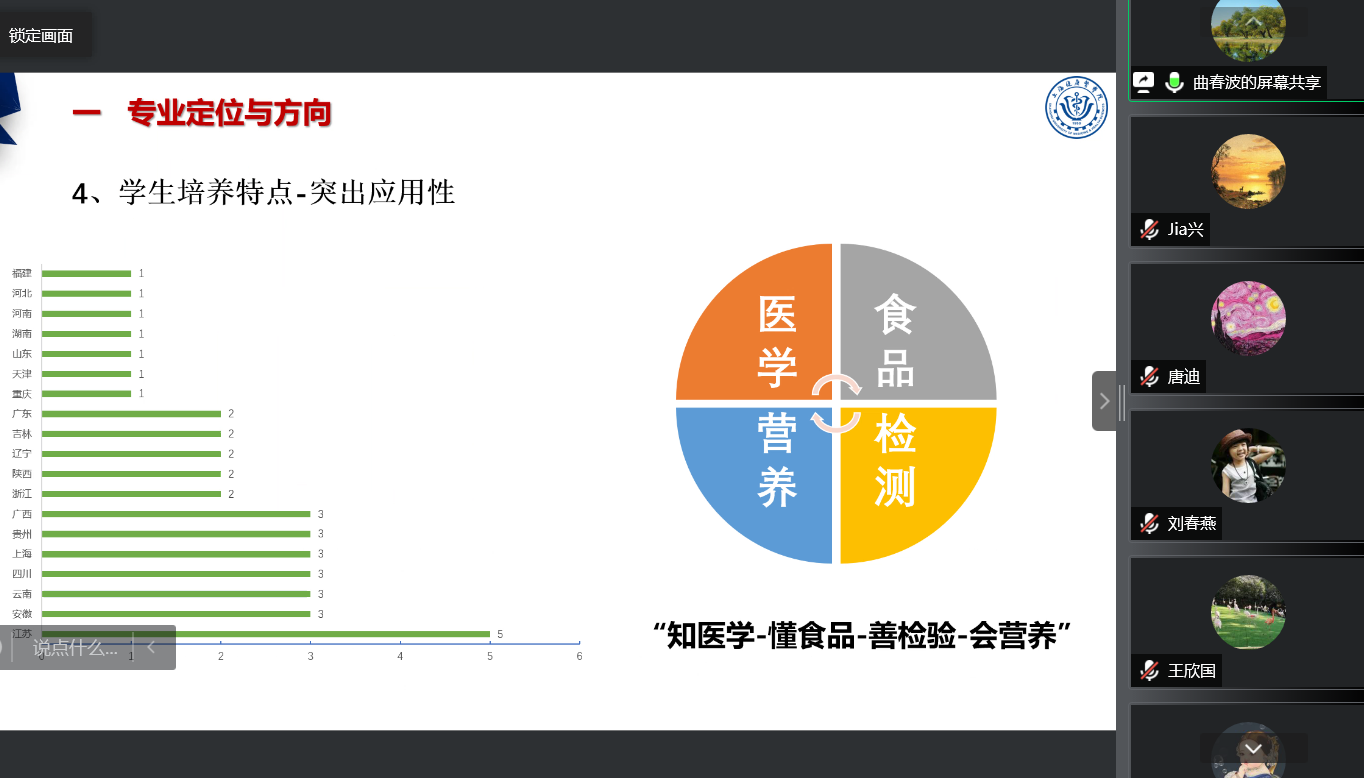 食品卫生与营养学专业主任曲春波老师,提炼了“知医学-懂食品-善检验-会营养”的主题,从专业目标、课程结构、学生培养模式等方面对食品卫生与营养学专业发展展开了阐释。公共事业管理专业教师王欣国老师,以“培养特色医管人才,助力健康中国建设”为题,详细介绍了公共事业管理专业的发展思路和学生就业规划。张静怡老师和唐迪老师分别以《食品化学》和《卫生事业管理》课程为例,向全院教师汇报了他们的教学设计和教学开展过程。