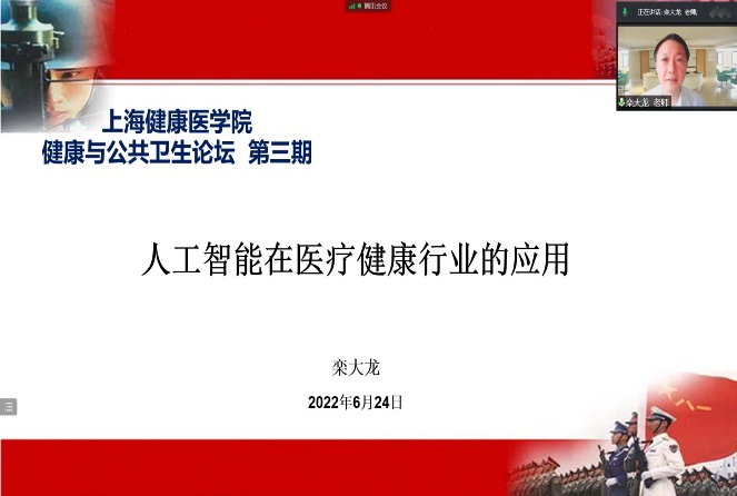 人工智能应用于医疗研究已经成为现代科技的热点,为促进老师和同学进一步了解人工智能在医学领域的发展及应用现状,6月24日下午,新葡的京集团35222vip特邀栾大龙教授做了《人工智能在医疗健康行业的应用》的主题报告。那立欣副院长主持会议,学院老师及同学参加了此次学术交流会。