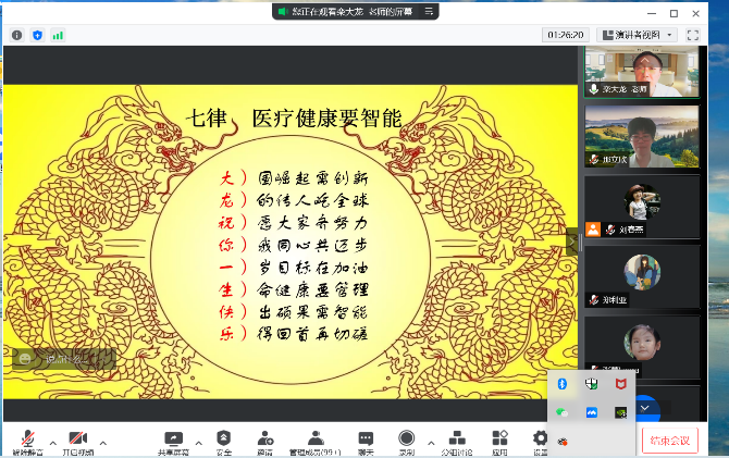 栾教授表示,智能医疗健康发展应聚焦于“用”,以面向人民生命健康为内核,以推动智能医疗健康基础层和技术层协调发展为手段,形成维护全民健康创新发展的开放系统。“智促医健”是新时代医疗服务的重大战略目标,已纳入国家医疗健康的顶层战略设计中,人工智能将将给未来医疗技术带来深刻的变化,是未来医学创新和改革的强大动力。栾教授以一首藏头诗结束了本次讲座,表达了对公共卫生学院美好的勉励与祝福。