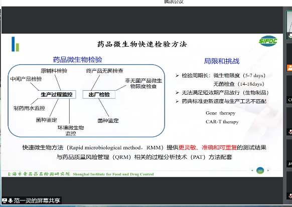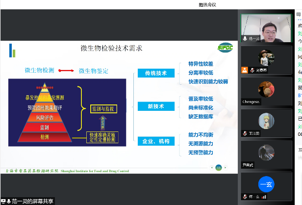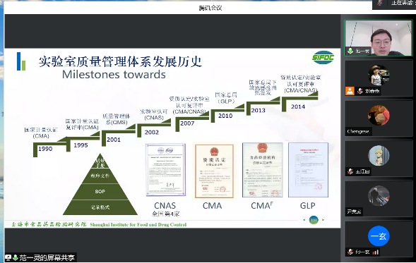 随后,范一灵副主任结合他所在的岗位,介绍了实验室质量管理体系发展史、食品药品质量管理发展的阶段和相关要求,并详细介绍了他在的微生物部门的一些工作及部门的发展概况,分享了他参与制定和修订食品安全国家标准、《中国药典》微生物相关通则相关工作的经历。