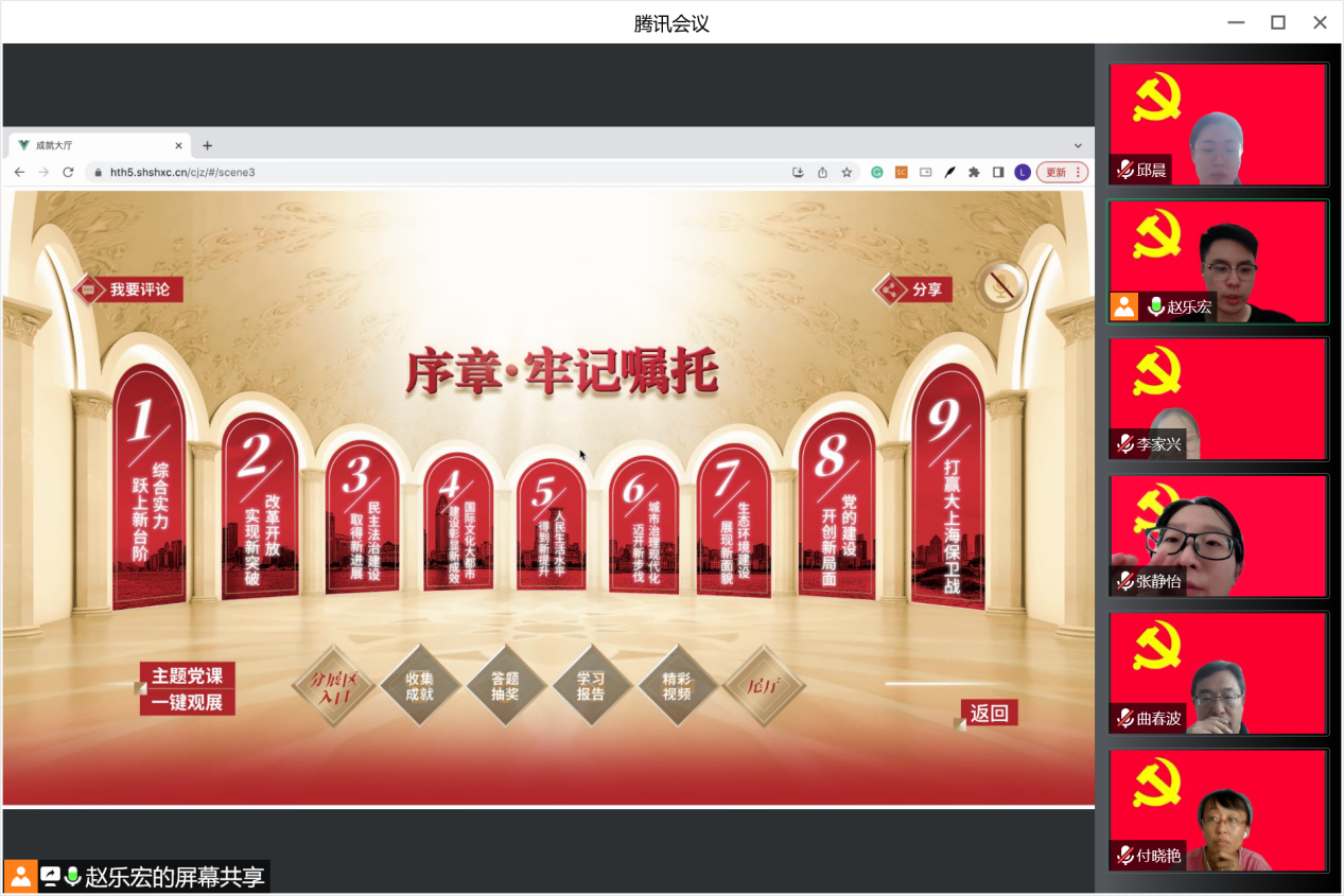 学院党支部依托“红途”“学习强国”等线上学习平台,以“集中培训+个人自学”“线上参观+线下交流”的方式,通过集中动员、导览领学、感悟分享等环节,组织全体党员认真观看上海发展成就展。主题学习活动,党员同志根据提前观摩的经验,以电脑端为例,对展览的总体布局、特色功能、互动方式等进行了详细介绍,并挑选部分模块进行演示,有效激发了党员的学习热情。大家在支部主题学习活动和微信群中积极分享观展感悟,表达对上海发展成就的自豪与骄傲,也进一步增强了为上海增光添彩的使命感。此外,新葡的京集团35222vip党支部把云端观看上海发展成就展与学习贯彻市第十二次党代会精神、学习研读《习近平在上海》《当好改革开放的排头兵——习近平上海足迹》等书籍相结合,通过“体会接龙”等互动方式,掀起学习热潮,引导党员学深悟透、融会贯通。